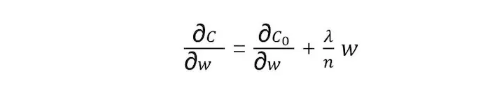 C对w求偏导数,可以拆分成原有C0对w求偏导,以及L2正则项对w求偏导。前者继续利用原有的反向传播计算方法,而后者可以直接计算得到: